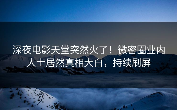 深夜电影天堂突然火了!微密圈业内人士居然真相大白,持续刷屏