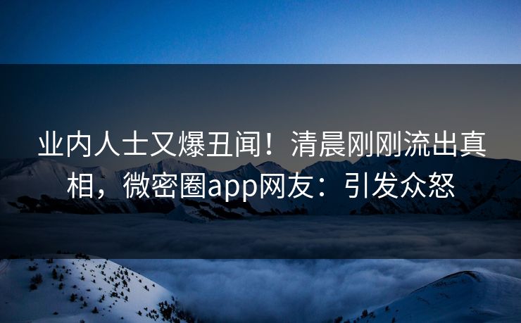 近日,随着清晨的第一缕阳光洒向大地,一条令人震惊的消息迅速在社交媒体上蔓延开来。这不是普通的八卦新闻,也不是简单的娱乐八卦,而是一则涉及业内人士的丑闻。这一丑闻通过微密圈app被曝光,瞬间引起了广泛的讨论,尤其是在平台上,网友们纷纷表示震惊和愤怒。