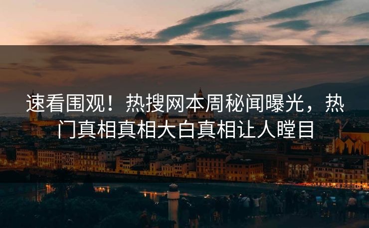 随着互联网的发展,越来越多的用户通过热搜网获取到最新的社会资讯和娱乐新闻。很多新闻背后往往隐藏着鲜为人知的真相,这些真相一旦揭开,势必引发社会关注和讨论。本周,热搜网再次爆出了一连串震撼人心的秘闻,真相大白的瞬间,让所有人都为之一震。今天,我们就带你一起速看围观,这些真相到底有多惊人?